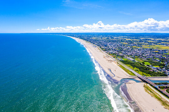 九十九里浜の最大の魅力は、どこまでも続く海岸線。
