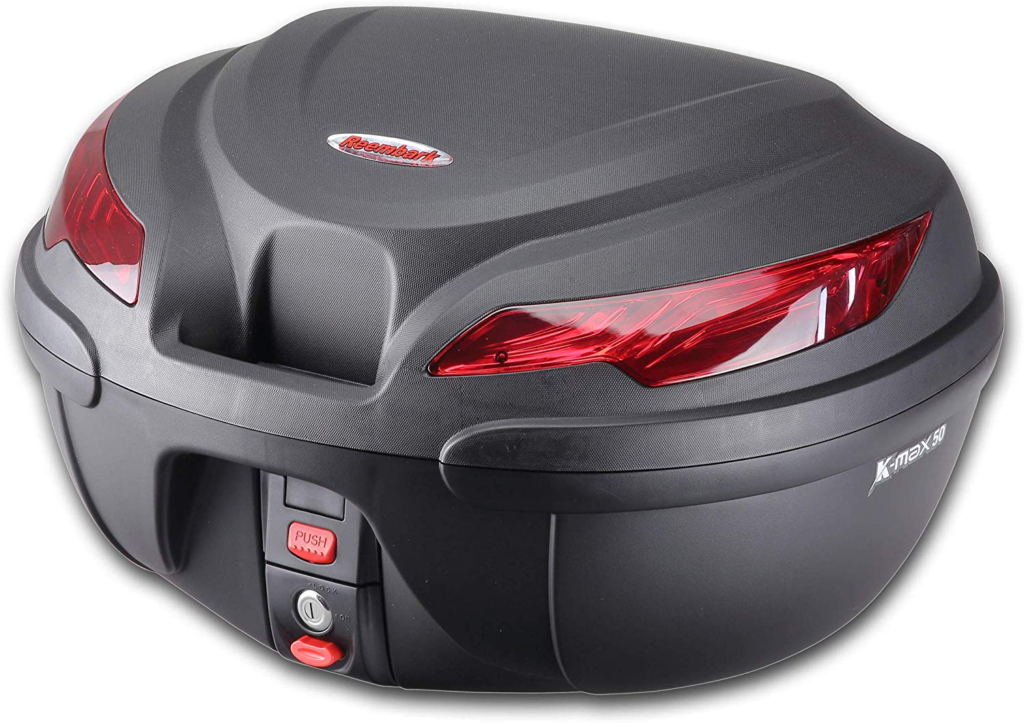 容量が大きいモデルではフルフェイスヘルメットも収納でき、ツーリング先でバイクを離れるときにも荷物の置き場所に困らない。鍵付きのタイプが一般的で、防犯性が高いのも安心できるポイント。