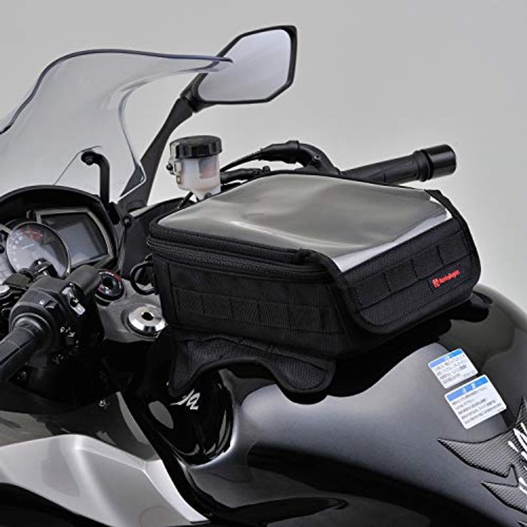 タンクバッグは、バイクの燃料タンクの上に装着するコンパクトな積載アイテムで、走行中でもアクセスしやすいのが最大の特徴。財布やスマホ、モバイルバッテリーなど、すぐ取り出したい小物を入れておくのに向いている。
